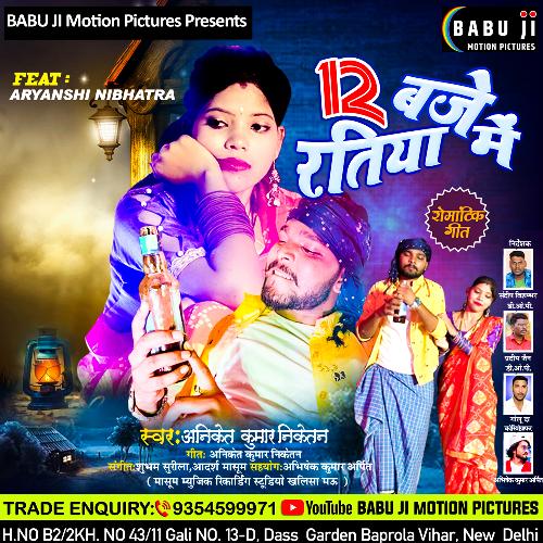 12 Baje Ratiya Men is sung by Aniket Kumar Niketan. Music composed by Mangal Dev. Lyrics written by Aniket Kumar Nketan. Released on 2024-02-17. Label: Babu Ji Motion Pictures.