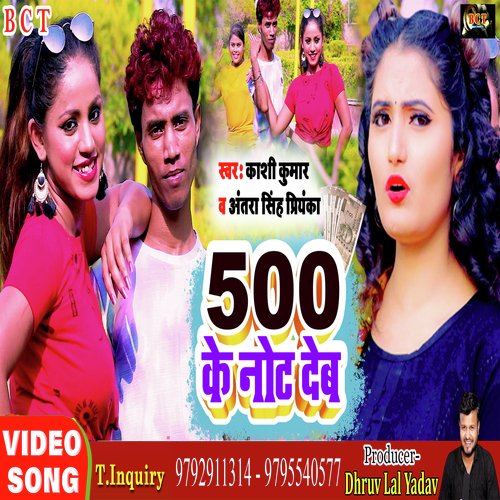 500 Ke Note Deb (Bhojpuri) is sung by Antra Singh Priyanka. Music composed by Dstar Studio Delhi. Lyrics written by Mantu Singh. Released on 2022-07-06. Label: BCT Media | ST.