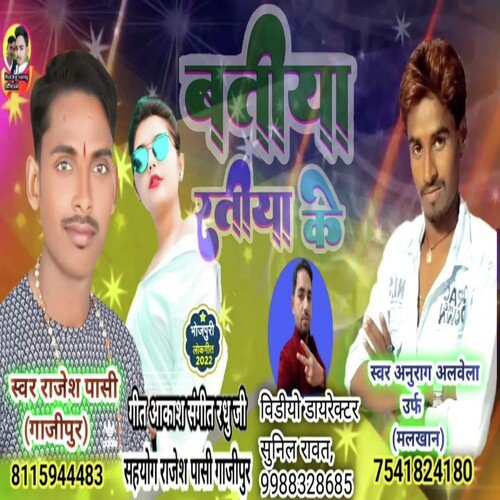 Batiya ratiya ke is sung by Anurag Albela (Malkhan). Music composed by Mamtosh Kumar. Lyrics written by Akash. Released on 2022-12-30. Label: Singer Malkhan Official | ST.
