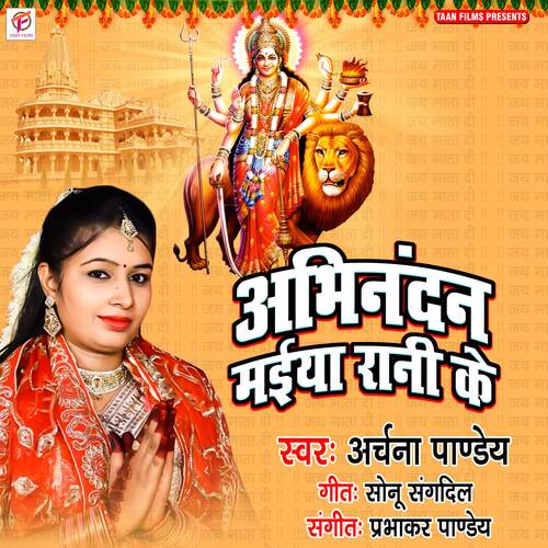 Abhinandan Maiya Rani Ke is sung by Archana Pandey. Music composed by Prabhakar Pandey. Lyrics written by Sonu Sangdil. Released on 2021-10-19. Label: Taan Films | ST.