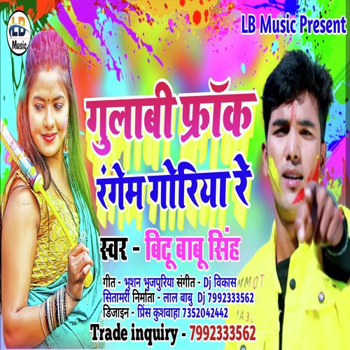 Gulabi Frak Rangem Goriya RE (Bhojpuri) is sung by Bittu Babu Singh. Music composed by Dj Vikash. Lyrics written by Bhusan Bhojpuriya. Released on 2022-03-12. Label: LB Music Present | ST.
