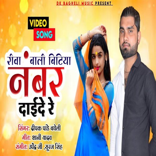 Rewa bali apan number daide re is sung by Deepak Pandey Bagheli. Music composed by Sk Sajan. Lyrics written by Sunny Yadav. Released on 2022-08-22. Label: DK MUSIC BAGHELI | ST.