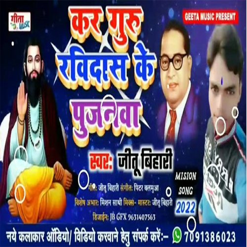 KAR GURU RAVIDAS KE PUJANVA (Bhojpuri Bhakti) is sung by Jitu Bihari. Music composed by Satish Yadav. Lyrics written by Jitu Bihari. Released on 2022-11-08. Label: Geeta Music Recording Studio | ST.