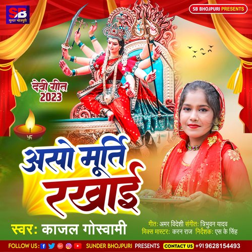 Aso Murti Rakhai is sung by Kajal Goswami. Music composed by Amar Videshi. Lyrics written by Amar Videshi. Released on 2023-11-21. Label: Sundar Bhojpuri.