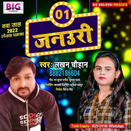 01 January (Bhojpuri) is sung by Lakhan Chauhan. Music composed by Sushant Yadav. Lyrics written by Man Kumar. Released on 2021-11-27. Label: Big Bhojpuri | ST.