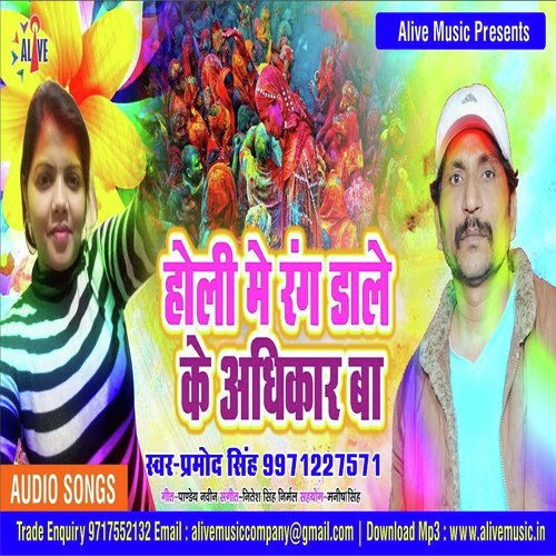 Holi Me Rang Dale Ke Adhikar Ba is sung by Pramod Singh. Music composed by Nitesh Singh Nirmal. Released on 2020-07-31. Label: Alive Music.