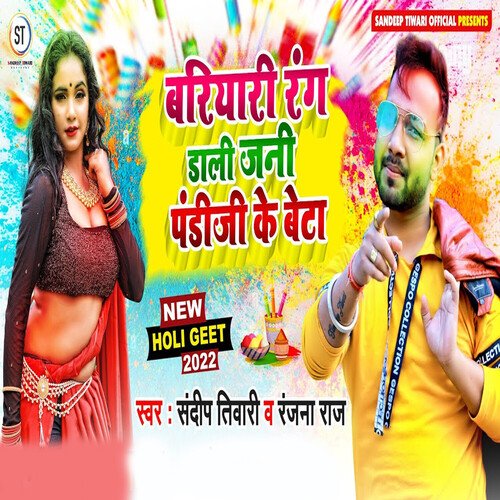 Bariyari Rang Dali Jaani Pandiji Ke Beta is sung by Ranjana Raj. Music composed by B K Singh. Released on 2022-04-16. Label: Sandeep Tiwari Official.