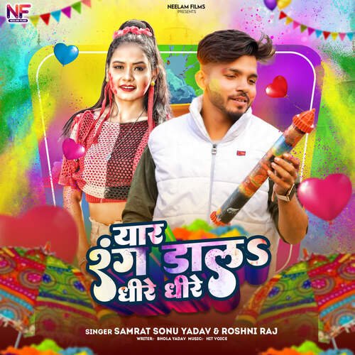 Yaar Rang Dala Dhire Dhire is sung by Roshni Raj. Music composed by Hit Voice. Lyrics written by Bhola Yadav. Released on 2024-02-28. Label: Neelam Music Zone.