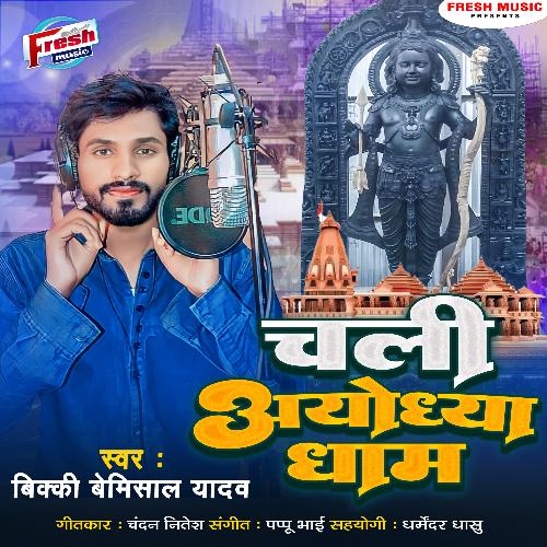 Chali Ayodhya Dham is sung by Vicky Bemisal Yadav. Music composed by Pappu Bhai. Lyrics written by Chandan Nitesh. Released on 2024-01-26. Label: Fresh Music.